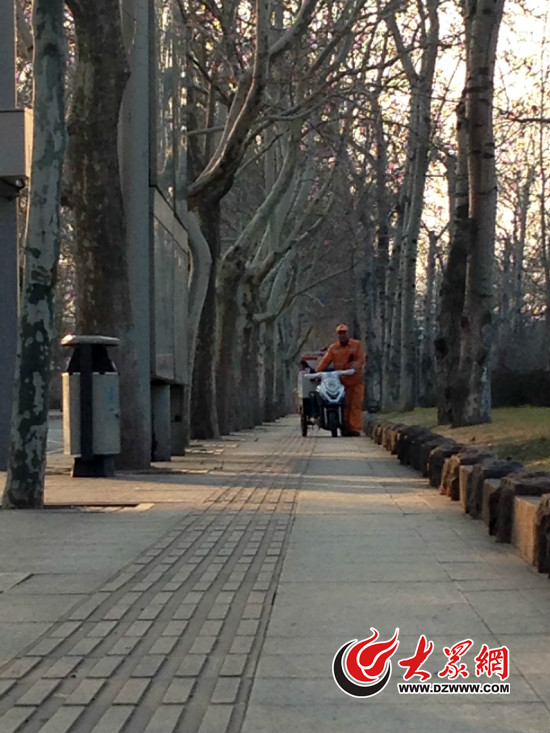 下午5點(diǎn),來自濟(jì)寧泗水的環(huán)衛(wèi)師傅劉寶堅(jiān)守在馬鞍山路,他負(fù)責(zé)東段近600米的衛(wèi)生,什么時(shí)候下班,他也不知道,“領(lǐng)導(dǎo)還沒通知”(大眾網(wǎng)記者韋輝 攝)