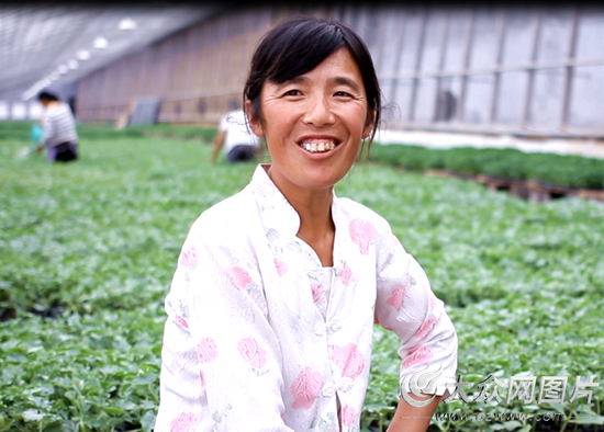 去年以來,菏澤市、區(qū)、鎮(zhèn)三級大力推進精準扶貧,大規(guī)模的中遠蔬菜合作社應運而生。劉玉紅把家里的5畝土地流轉給中遠蔬菜合作社,每畝地可以拿到150元的租金,另外,合作社再給1000斤小麥。家里的勞動力一下解放出來,丈夫可以去打工了,她也來到合作社干起了插苗工。因為工作能吃苦,她被選為大棚的棚長,每月的基本工資是2000元,還有幾百元不定的績效考核收入。相比過去家里每年七八千的“固定收入”,現(xiàn)在僅靠劉玉紅“農(nóng)轉工”一人,全家的收入是過去的4倍多,丈夫也可以安心地在外打工,再往家里寄錢。