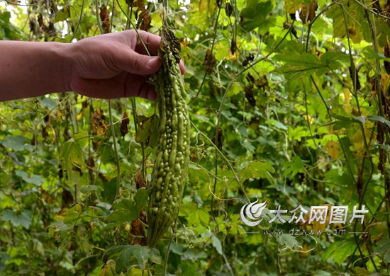 貧困戶王瑞見去年開始種大棚,上半年種黃瓜,下半年種苦瓜,年純收入達到了3萬元,順利實現(xiàn)脫貧。(記者 王宗陽 攝)