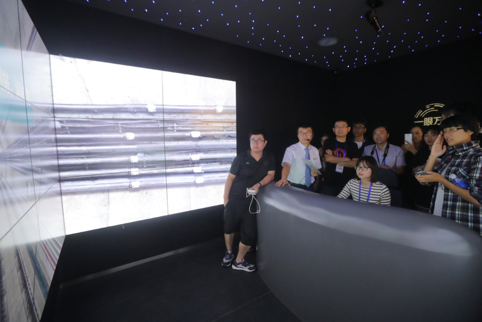 采訪團(tuán)記者掃描二維碼進(jìn)入青島地鐵展示館。