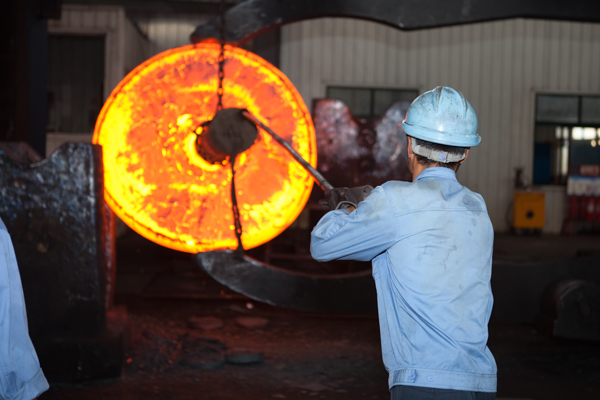 19日下午,從濟南市區(qū)出發(fā),沿經(jīng)十路一路向東,一個半小時后就能看到緊鄰國道的山東伊萊特重工辦公大樓。敞亮開放的樓層設計、現(xiàn)代化的生產(chǎn)線、幾處以海外城市命名的房間,整個廠區(qū)在不經(jīng)意間流露出幾分國際范兒。走進鍛造車間,首先映入眼簾的是巨大的鍛造操作機,這個“大力士”能舉起100噸重的鋼材原料,三下五除二就能“捏成”直徑8米的環(huán)形鍛件。一會兒功夫,一個新的環(huán)形鍛件已基本成型,巨大的圓環(huán)燒得通紅透亮,十分壯觀。車間工作人員告訴記者,等明年新的生產(chǎn)線投產(chǎn)后,能整體鍛造出直徑16米的環(huán)形鍛件,是目前世界上最先進水平。