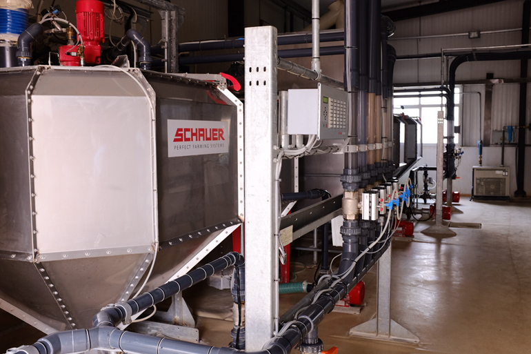 公司引進(jìn)先進(jìn)的液態(tài)飼料調(diào)配、供給系統(tǒng)全自動控制(撒偉 攝)