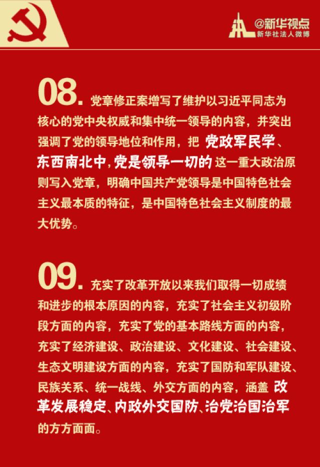 大會(huì)通過的黨章修正案,共修改107處,其中總綱部分修改58處,條文部分修改49處。重點(diǎn)修改、增加了哪些說法?戳圖學(xué)習(xí)!