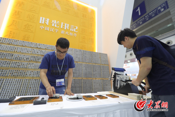 來自濟南的創(chuàng)客團隊,在現(xiàn)場展示活字印刷。大眾網(wǎng)記者 王長坤 攝