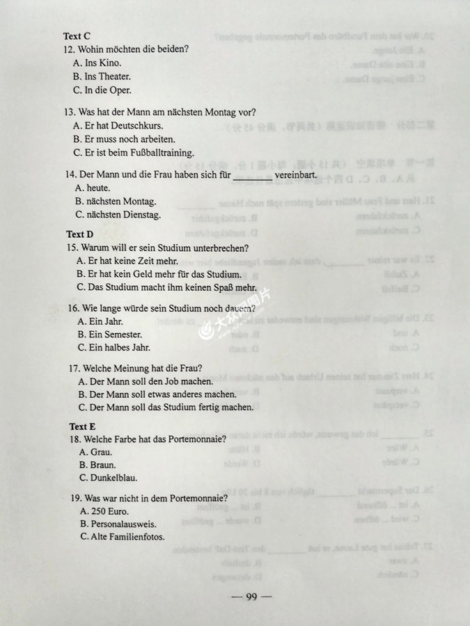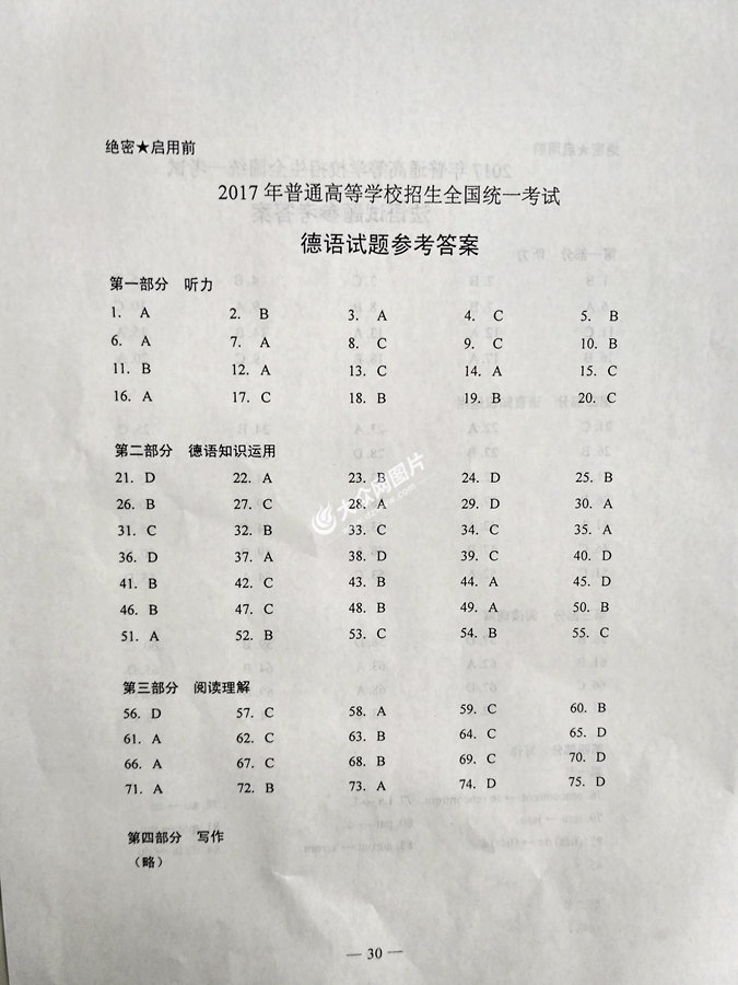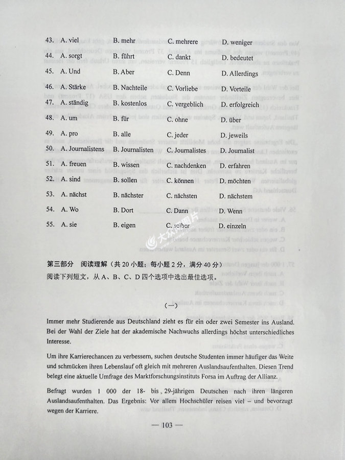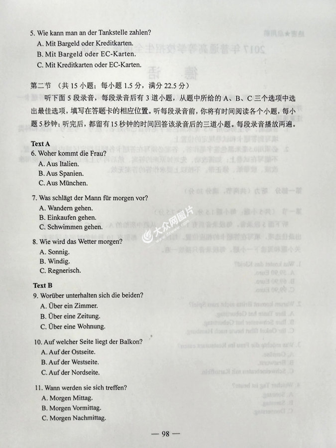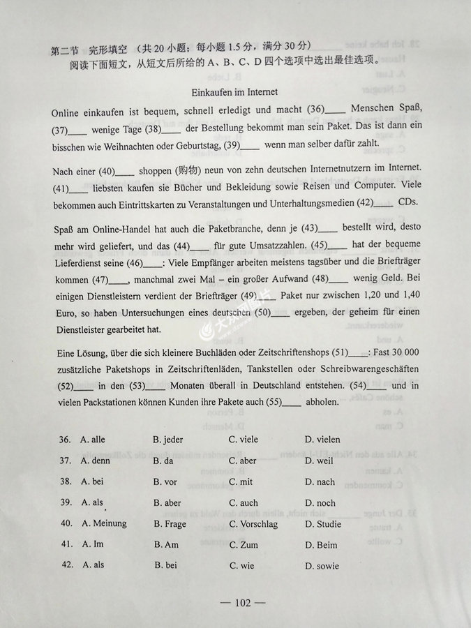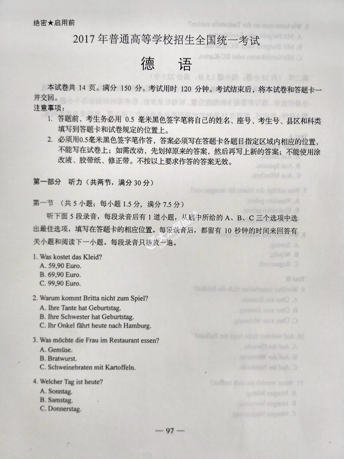2017年山東高考德語試題及答案