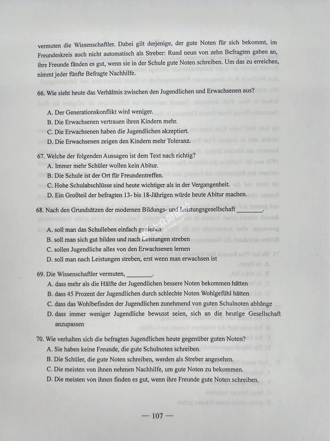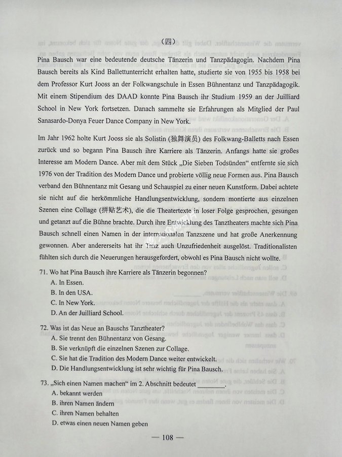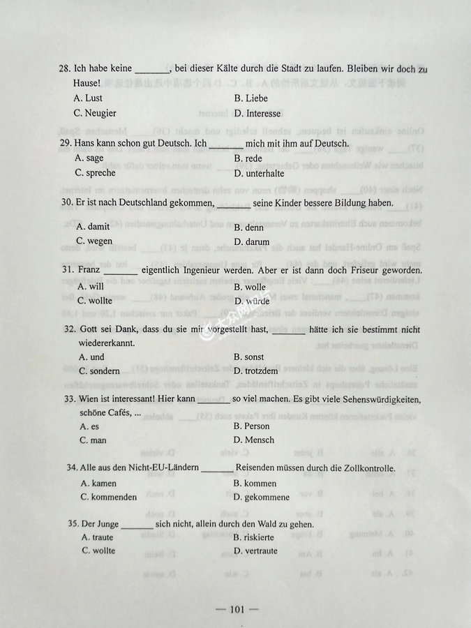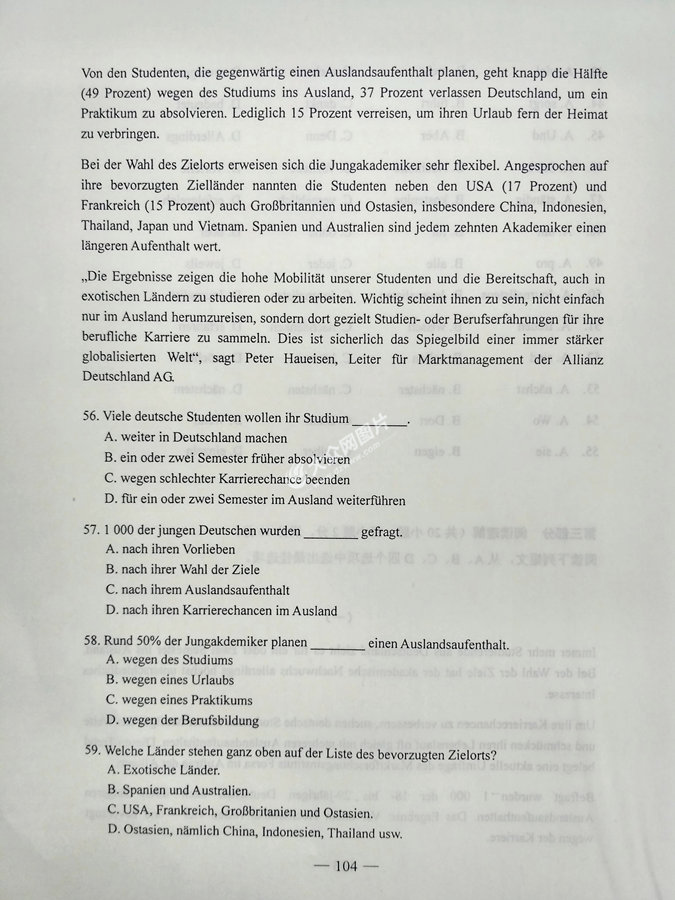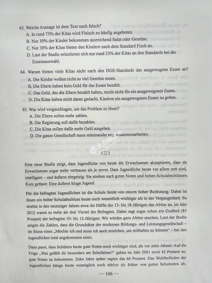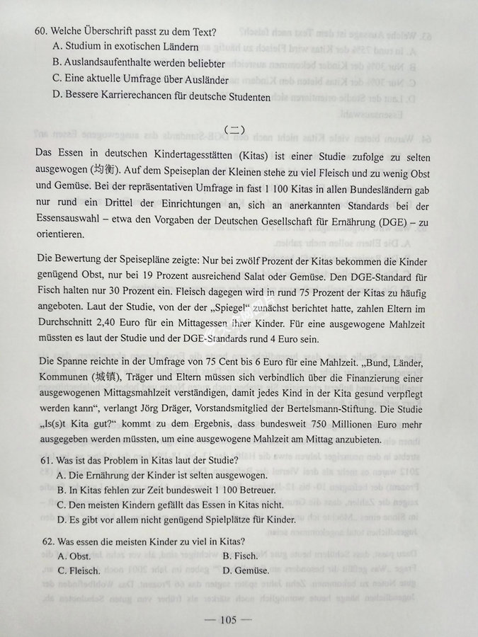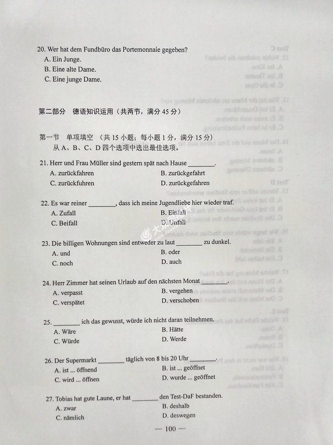2017年山東高考德語試題及答案