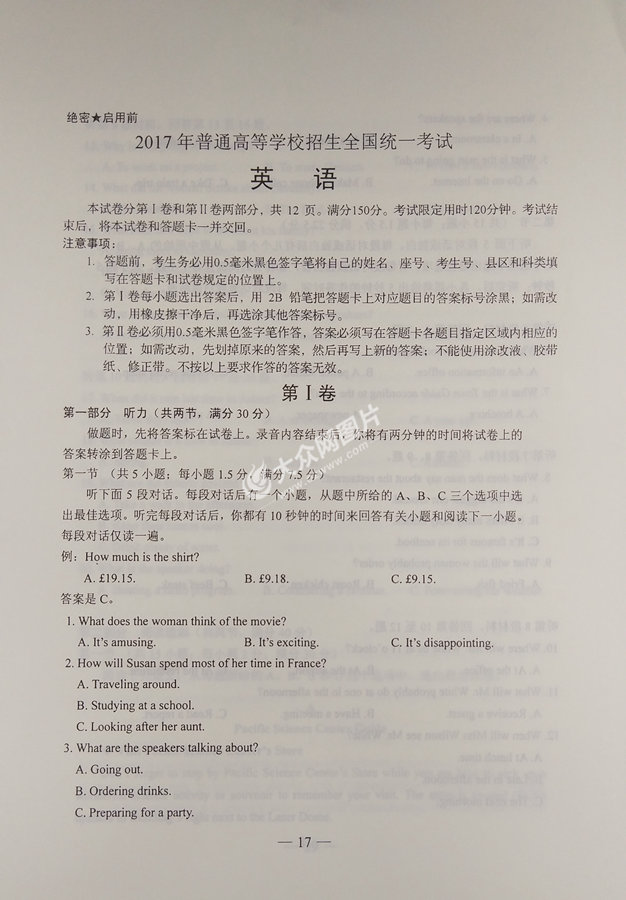 大眾網(wǎng)濟南6月8日訊 6月8日下午,2017年山東高考落下帷幕。當(dāng)天下午6點,山東省教育廳就今年高考實施情況舉行新聞發(fā)布會,大眾網(wǎng)第一時間對試題及答案予以公布。