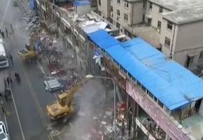 (吉祥商街兩邊的違建門頭房均已拆除,原址被鋪上防塵網(wǎng),等待改造。當(dāng)天晚上我看報(bào)紙上面...更多>>