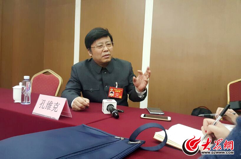 全國(guó)政協(xié)委員、省文聯(lián)副主席孔維克接受記者采訪。