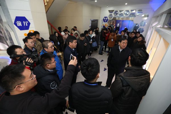 采訪團在圣泉集團產(chǎn)品展廳進行采訪。