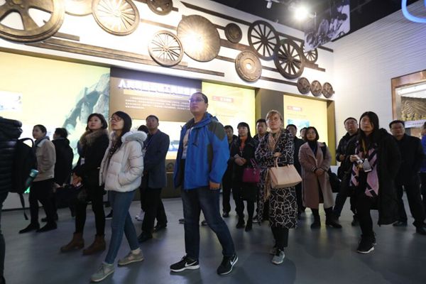 采訪團(tuán)成員參觀重汽汽車(chē)博物館。