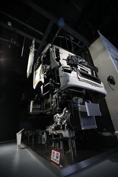 欣賞完了我國(guó)重型汽車(chē)界的“祖師級(jí)”汽車(chē),一路看下去,重汽的發(fā)展仿佛坐上了高速列車(chē),展示的產(chǎn)品和技術(shù)也越來(lái)越先進(jìn)。HOWO、斯太爾、黃河、威濼……一系列成功引進(jìn)和自主研發(fā)的品牌,使重汽成為國(guó)內(nèi)卡車(chē)行業(yè)驅(qū)動(dòng)形式和功率覆蓋最全的企業(yè)。在HOWO-T7H實(shí)體車(chē)拆解展示臺(tái)前,巨大的卡車(chē)被拆解成上百個(gè)部分進(jìn)行立體展示,對(duì)重型汽車(chē)感興趣的記者們可謂過(guò)足了癮,不停地尋找角度拍攝照片和小視頻。轉(zhuǎn)過(guò)一個(gè)彎,眼前一輛黃色的汕德卡重型汽車(chē)吸引了大家的目光,工作人員告訴記者,這是重汽集團(tuán)目前最先進(jìn)的車(chē)型之一,能實(shí)現(xiàn)連續(xù)行駛150萬(wàn)公里無(wú)大修。幾位記者爬進(jìn)高大的駕駛室,連連感嘆“比房車(chē)還寬敞舒適”。在發(fā)動(dòng)機(jī)核心技術(shù)展示區(qū),工作人員利用滑動(dòng)透明屏展示了國(guó)產(chǎn)化曼技術(shù)發(fā)動(dòng)機(jī)的工作原理,這是中國(guó)重汽在發(fā)動(dòng)機(jī)領(lǐng)域的核心成果,精密的設(shè)計(jì)引來(lái)一片贊嘆。