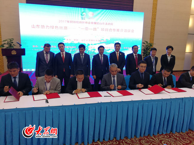 隨后,9月6日下午,山東助力綠色絲路——“一帶一路”項(xiàng)目合作推介洽談會(huì),在阿斯塔納北京大廈成功舉辦。有12家中哈雙方單位、企業(yè)集中簽定了合作協(xié)議,總投資額約23.6億元,涉及能源開發(fā)、商貿(mào)物流、農(nóng)業(yè)科技、產(chǎn)能合作、旅游合作等相關(guān)領(lǐng)域。