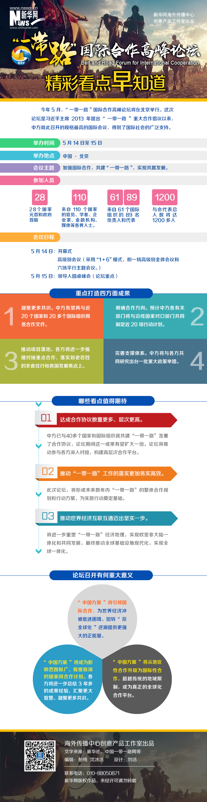 14日至15日,舉世矚目的“一帶一路”國際合作高峰論壇將在北京舉行,論壇主題為“加強國際合作,共建‘一帶一路’,實現(xiàn)共贏發(fā)展”。國家主席習近平將出席開幕式并主持領(lǐng)導人圓桌峰會,29位外國元首、政府首腦及聯(lián)合國秘書長等3位重要國際組織負責人將出席圓桌峰會。[詳細]