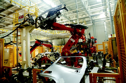 一個車間40臺機(jī)器人去年正式投入使用后,效果明顯!叭缃瘢麄車間的事故率下降了70%以上,一個月幾乎沒有事故發(fā)生,這得益于關(guān)鍵崗位機(jī)器人的使用!备L锲嚦壙ㄜ嚬S車身部部長管恩順說。