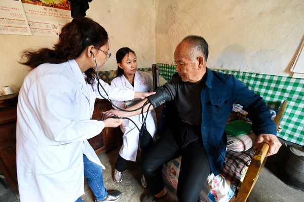 健康扶貧醫(yī)療志愿服務隊為老人查體