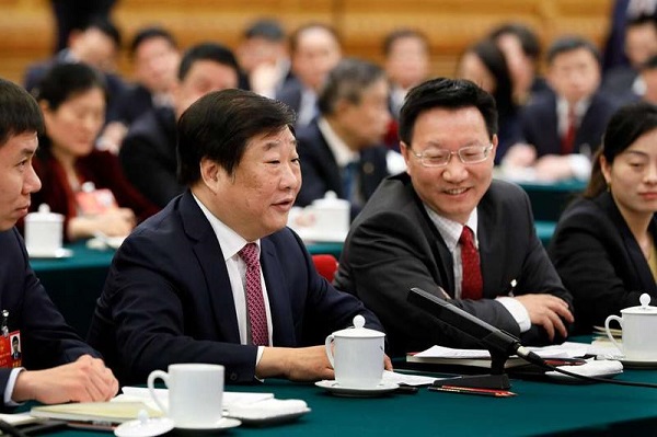 3月8日上午,中共中央總書(shū)記、國(guó)家主席、中央軍委主席習(xí)近平來(lái)到十三屆全國(guó)人大一次會(huì)議山東代表團(tuán)參加審議,譚旭光、邱亞夫、卓長(zhǎng)立、王銀香、傅明先、張淑琴等山東團(tuán)代表發(fā)言,向總書(shū)記匯報(bào)。圖為譚旭光代表發(fā)言。(新銳大眾記者 房賢剛 報(bào)道)