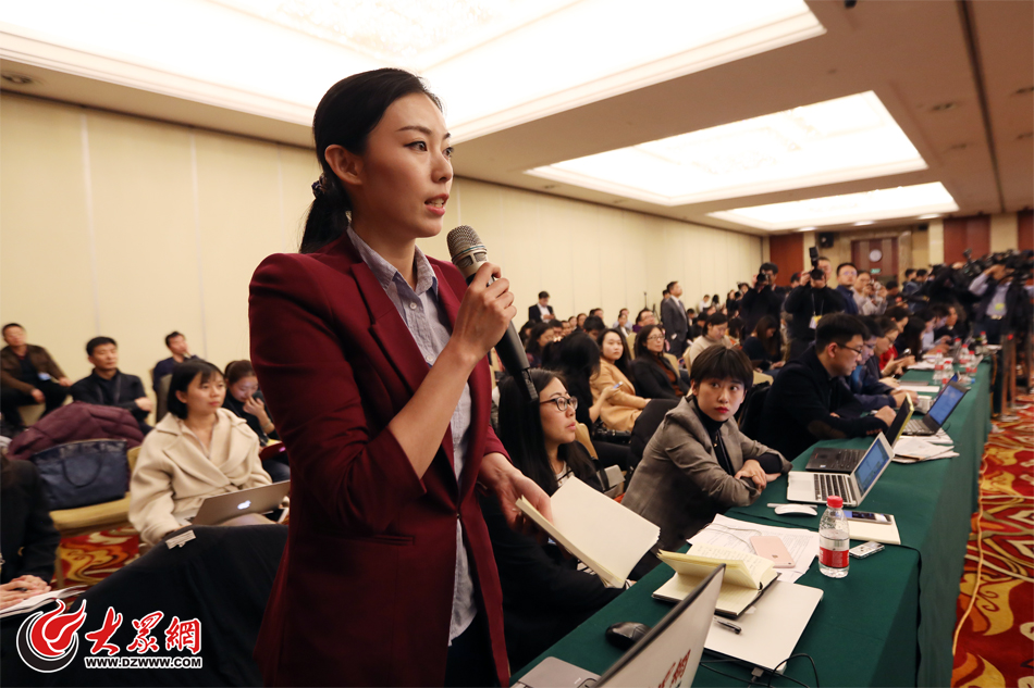 大眾網(wǎng)記者向代表提問(wèn)。(亓翔 攝)