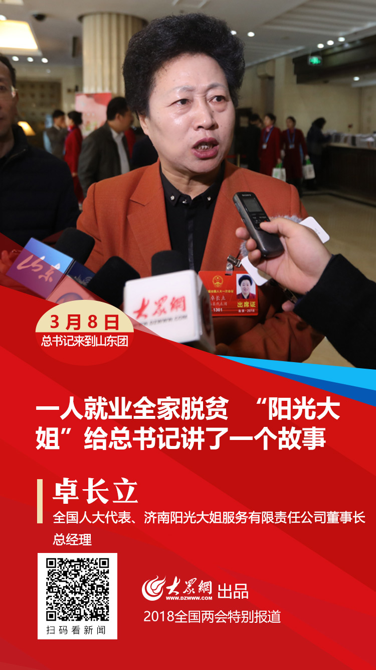 “沒想到總書記還認(rèn)識我,可能和我一直穿的這件服務(wù)員衣服有關(guān)。”卓長立興奮地對大眾網(wǎng)記者說,總書記不時地和她互動交流,在聽到“陽光大姐”服務(wù)員的腰包越來越鼓了、臉上的笑容越來越燦爛了,總書記鼓勵卓長立要把家政行業(yè)這個朝陽產(chǎn)業(yè)、互惠共贏的產(chǎn)業(yè)當(dāng)成事業(yè)發(fā)展好。