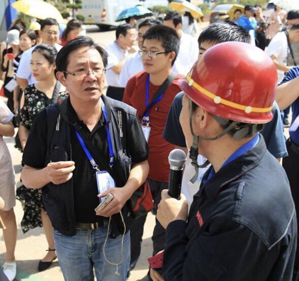 采訪團(tuán)記者采訪日照鋼鐵控股集團(tuán)有限公司專業(yè)工程師周洪寶。