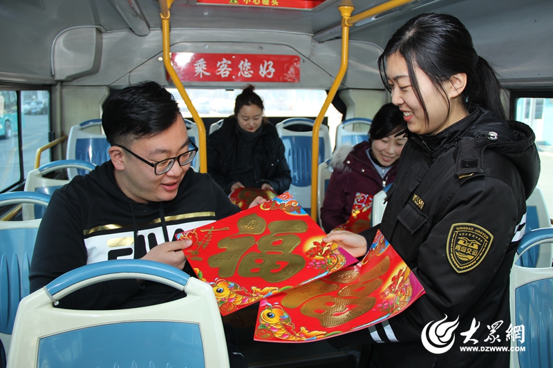 臨到終點(diǎn),劉雪給乘客們發(fā)起了福字,車(chē)廂內(nèi)洋溢著過(guò)年的喜悅