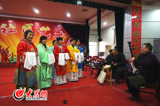 “各位市民大家好,聽俺大鼓敲一敲;京東大鼓鼓點(diǎn)忙,咚咚鼓聲引俺唱……”頓挫有力的鼓點(diǎn),粗獷豪放的三弦兒,帶有當(dāng)?shù)卦厣某,聲聲回蕩在徐樓社區(qū)藝術(shù)團(tuán)的排練室。為了小年的演出,棗莊市嶧城區(qū)徐樓社區(qū)藝術(shù)團(tuán)的團(tuán)員們從農(nóng)歷臘月初五開始天天加緊排練,柳琴、快板、小品、黃梅戲,琴書、豫劇、大鼓、拉魂腔,團(tuán)員皆是手拿把攥。近日,大眾網(wǎng)記者前往嶧城徐樓社區(qū)走訪了棗莊首家莊戶劇團(tuán)背后的故事。
