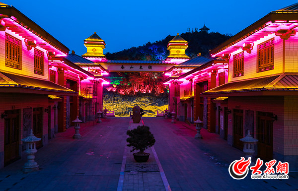泰山東街是以歷史文化為主要內(nèi)容的商業(yè)街區(qū),是為《中華泰山-封禪大典》實(shí)景演出項(xiàng)目服務(wù)的基礎(chǔ)配套設(shè)施,這里的燈光五彩斑斕與上方的春晚分會場相呼應(yīng),十分絢麗多彩