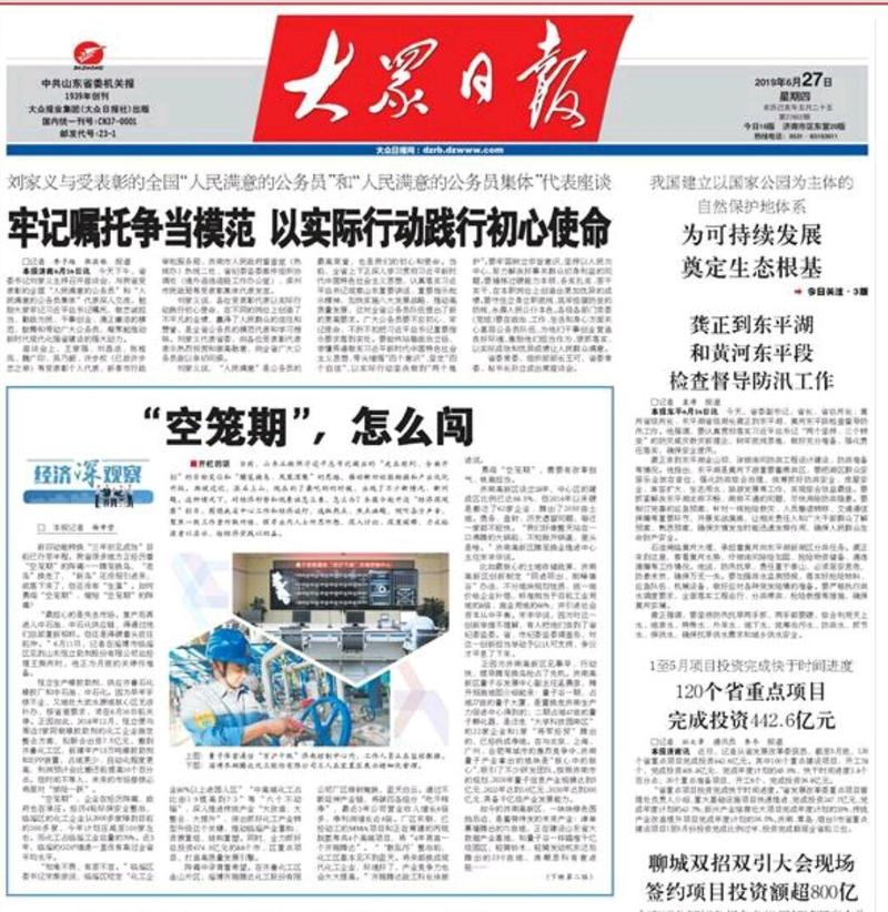 6月27日,大眾日報在一版重點刊發(fā)《“空籠期”,怎么闖》。記者在淄博市臨淄區(qū)、濟南高新區(qū)等地采訪,不少企業(yè)正在經(jīng)歷著關(guān)停并轉(zhuǎn)的陣痛,地方也經(jīng)歷著產(chǎn)業(yè)重構(gòu)、資源重組、結(jié)構(gòu)重塑的壓力,而那些見事早、行動快,提早騰籠換鳥,“凈籠迎靚鳥”的效應(yīng)已經(jīng)顯現(xiàn),搶占了發(fā)展先機。