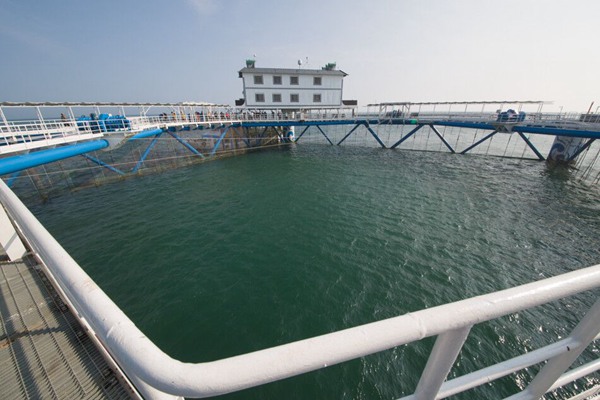 7月18日,在長島海洋生態(tài)文明綜合試驗區(qū) ,記者們登上了全球首座深水智能化坐底式網箱弘祥海洋牧場(長鯨1號)。這里的全自動喂料、收網裝置大大減少了人力,僅需四個人一年就能養(yǎng)1000噸魚。