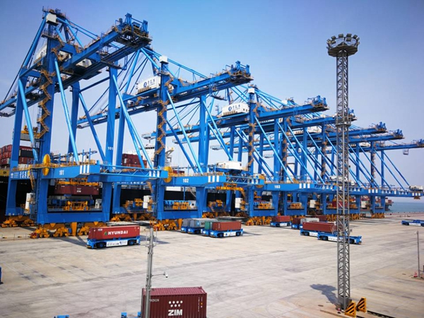 網(wǎng)絡名人走進青島港“無人碼頭”。
