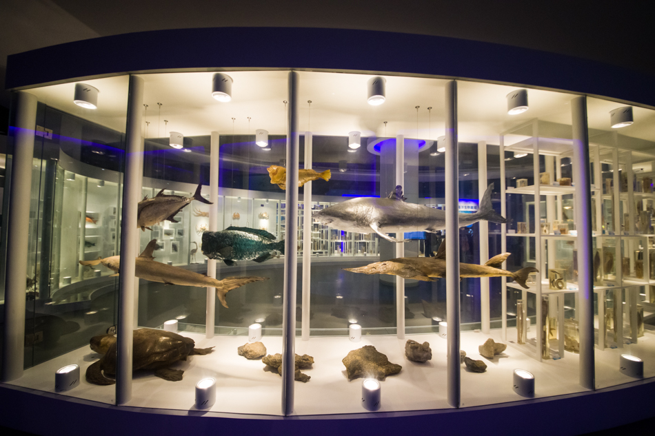 “日照海洋岸線長、海洋資源豐富,有悠久的海洋文明發(fā)展史和深厚的海洋文化底蘊,館內(nèi)藏品豐富,從5億年前的貝類標本到現(xiàn)在的布氏鯨共計千余種展品,”日照市海洋發(fā)展局副局長孫玉忠告訴記者。在這里,游客可以近距離地通過體驗式互動,接觸海洋知識,“科普館建設(shè)的重要目的就是傳播海洋科普知識,立足日照,打造一個面向全國的科普平臺”。