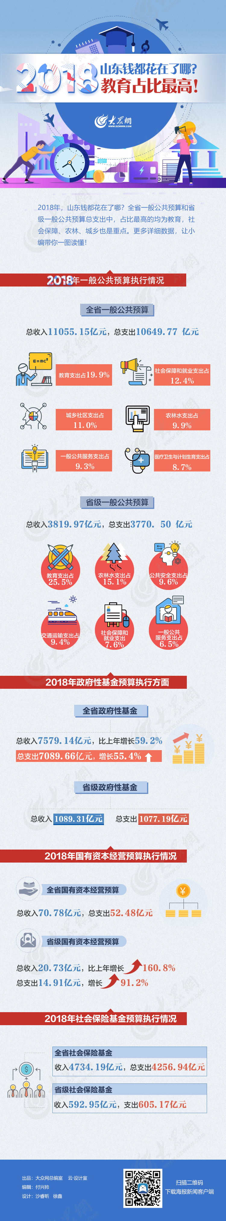 大眾網(wǎng)·海報新聞濟(jì)南2月19日訊(記者 姜洋)2018年,山東錢都花在了哪?記者從山東省十三屆人大二次會議上了解到,全省一般公共預(yù)算和省級一般公共預(yù)算總支出中,占比最高的均為教育,分別占19.9%和25.5%。