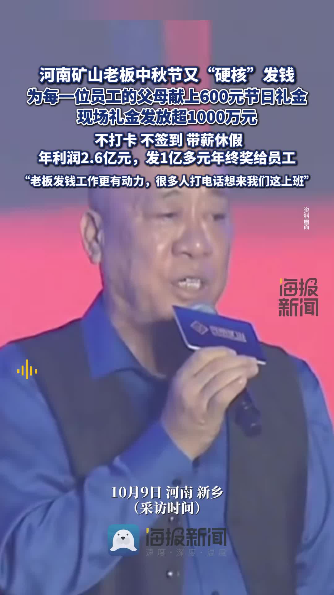 河南礦山老板中秋給員工發(fā)禮金超1000萬,人事部門:很多人打電話說想來上班