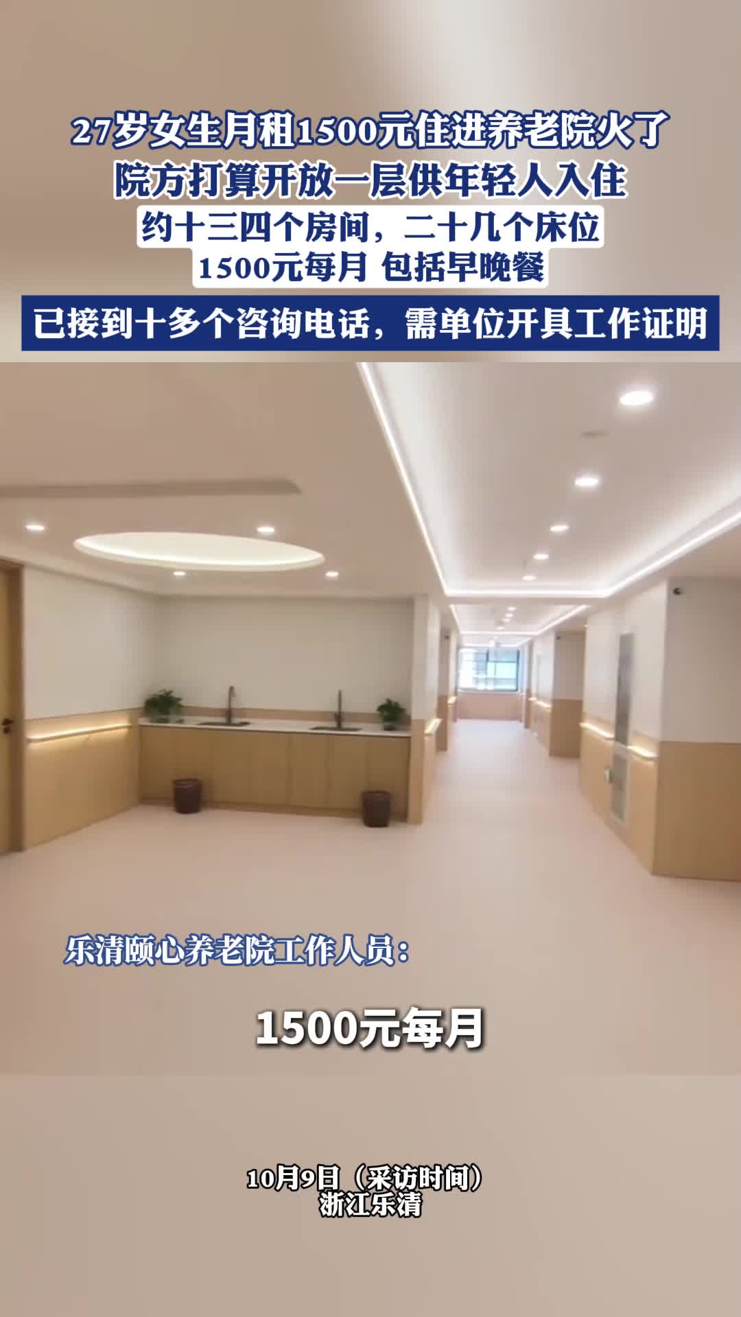 養(yǎng)老院回應27歲女生入?。河媱濋_放一層用于接收年輕人入住,每月1500元包含早晚餐