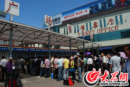 2日上午十點半左右,記者又趕到濟南火車站。在火車站廣場西側(cè)開設(shè)的動車票售賣窗口記者看到,一共8個買票窗口,每個窗口前都排滿了購票的市民,記者粗略數(shù)了一下,每排都要有二三十人的樣子,雖然火車站設(shè)置了遮陽棚,但在近30度的高溫下,排在隊尾的市民還是被烈日暴曬。