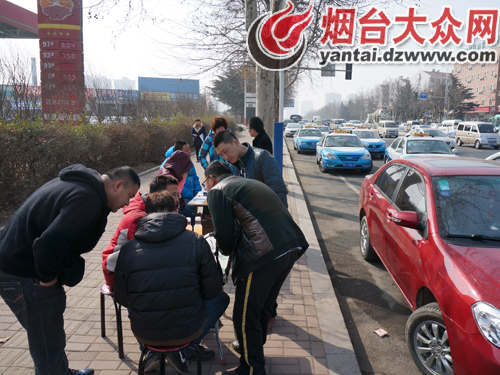煙臺(tái)市區(qū)內(nèi)有2000余輛正規(guī)出租車和5000余名司機(jī),僅僅在2月19日到2月25日這短短一周的時(shí)間里,嘀嘀打車司機(jī)版在煙臺(tái)的用戶數(shù)量就激增千余個(gè)。為了嚴(yán)格核實(shí)出租車的正規(guī)性,不給“黑車”可乘之機(jī),公司關(guān)閉了網(wǎng)上審核系統(tǒng),從北京派員工到各個(gè)城市進(jìn)行現(xiàn)場資料審核。在煙臺(tái)市芝罘區(qū)機(jī)場路上的CNG加氣站門前,一個(gè)小攤位前聚集了十幾名出租車司機(jī),這是嘀嘀打車在煙臺(tái)審核司機(jī)資料的唯一途徑。由于不少老司機(jī)對(duì)于智能手機(jī)的操作十分陌生,除了審核資料外,工作人員還在教導(dǎo)司機(jī)如何使用該軟件。