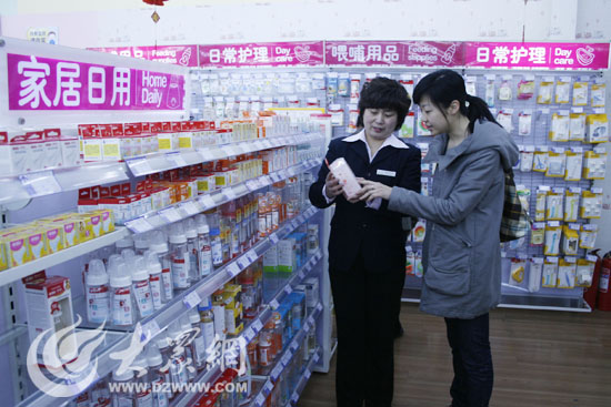 濟(jì)南嬰貝兒健康管理顧問有限公司副總經(jīng)理馬萍給記者講解塑料奶瓶辨別知識