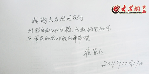 雖然崔顯仁不會上網(wǎng),但他對網(wǎng)友也充滿了感激之情。在采訪結(jié)束后,崔顯仁吃力地拿起碳素筆,用顫抖的雙手寫下了他對網(wǎng)友的情誼:“感謝網(wǎng)友們對我的關(guān)心和支持,我將積極努力工作,不辜負(fù)你們對我的希望”。