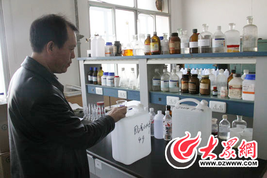 山東省醫(yī)科院放射醫(yī)學研究所副所長、研究員鄧大平向記者展示臥虎山水庫取樣樣品