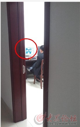 在網(wǎng)友拍攝的曝光圖片中,記者發(fā)現(xiàn)還有一名工作人員在玩電腦游戲。