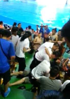 呂先生介紹說(shuō),8月5日,當(dāng)時(shí)進(jìn)表演廳觀看海豚表演的觀眾有4000多人,現(xiàn)場(chǎng)維持秩序的工作人員僅為20多人,且有部分是暑期實(shí)習(xí)生。當(dāng)時(shí),兩名武漢游客由于占座不成與旁邊的游客發(fā)生了沖突,隨后便坐在應(yīng)急通道上不肯起身。工作人員上前勸說(shuō),其中一名女子起身抓住工作人員的胳膊便咬了一口,導(dǎo)致矛盾升級(jí)。之后,另一名男子在沖突過(guò)程中將一名工作人員推倒跌下臺(tái)階,然后就發(fā)生了毆打游客的事件。