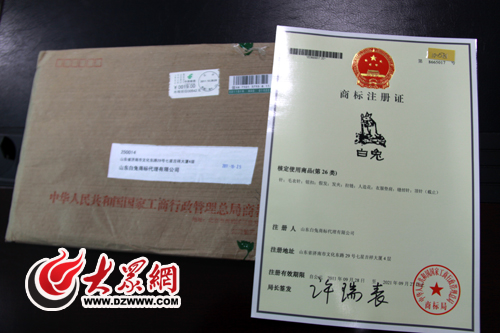 11月1日,山東白兔商標(biāo)代理公司收到了國家工商總局寄來的商標(biāo)注冊證。