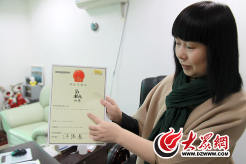 李芳對記者介紹她所注冊的“白兔”商標(biāo)。