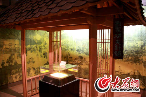 在濟(jì)南市博物館二樓展廳,“劉家功夫針?shù)仭弊鳛闈?jì)南古代商業(yè)發(fā)展的見(jiàn)證對(duì)外展示。