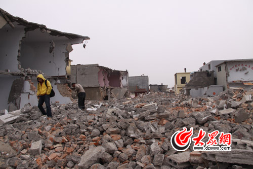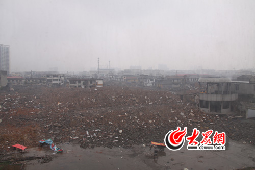 燕山路區(qū)域位于薛城區(qū)城中心,也是薛城的舊城區(qū),這里曾是一個(gè)千余戶居民的聚居地。記者4月14日上午冒雨來到這里時(shí),看到方圓數(shù)百畝大都拆遷完畢,到處是破碎的瓦礫,推土機(jī)和運(yùn)輸車仍在忙碌著,發(fā)出機(jī)器的轟鳴聲。在一些剛剛推倒的建筑旁,有民工樣子的工人正在用大錘砸著尚未完全倒下的斷墻,所有這些都說明,燕山路區(qū)域拆遷工作已近尾聲。