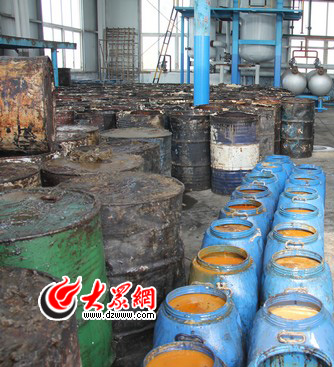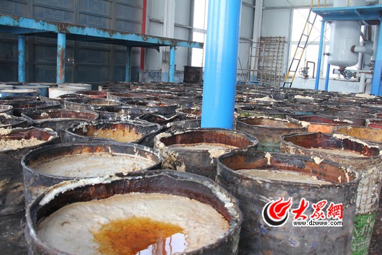 位于濰坊港附近的濰坊金信達生物化工有限公司董事長宮述亮遇到了煩心事,因為企業(yè)所需的原料地溝油嚴重不足。2月25日,大眾網(wǎng)記者來到這家企業(yè)采訪,宮述亮對記者說,以前工人每天兩次到酒店回收餐廚垃圾(以地溝油為主),一天下來,收回一噸也就是6桶餐廚垃圾沒問題,但近段時間以來,每天收購的餐廚垃圾少時兩桶,多時也只有三桶!叭绻@種情況維持下去,柴油的產(chǎn)量會直接受到影響!睂m述亮說。