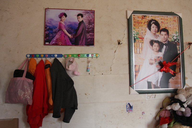 墻上掛著的照片證明著這個家庭曾經(jīng)的美好。(大眾網(wǎng)網(wǎng)友 施曉亮 攝)