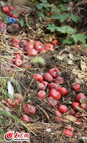 在趙連虎的西紅柿大棚旁邊,稀稀拉拉地散落著一些成熟的西紅柿,有的已經(jīng)開始腐爛,“這些都是賣不掉傾倒掉的”,一位菜農(nóng)說,在地里還有很多成熟的西紅柿賣不掉,直接爛掉了。