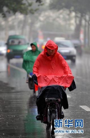 7月19日,市民在濟南街頭冒雨騎行。當日是今年入伏第一天,山東省迎來一場強降雨。據山東省氣象臺預報,7月19日至21日,山東省大部分地區(qū)將有強降雨,局部地區(qū)降水量將超過200毫米。目前氣象部門已經發(fā)布暴雨藍色預警信號,提醒居民和相關部門加強防范。新華社記者 朱崢 攝