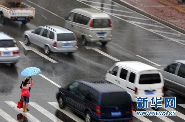 7月19日,兩位濟南市民在玉函路冒雨等候過馬路。當日是今年入伏第一天,山東省迎來一場強降雨。據山東省氣象臺預報,7月19日至21日,山東省大部分地區(qū)將有強降雨,局部地區(qū)降水量將超過200毫米。目前氣象部門已經發(fā)布暴雨藍色預警信號,提醒居民和相關部門加強防范。新華社記者 朱崢 攝